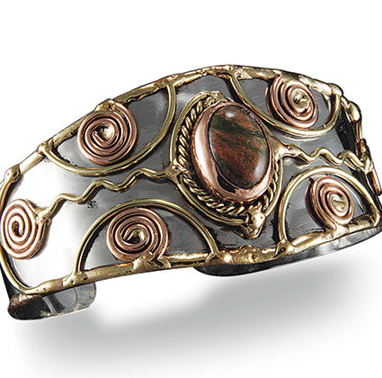 Mixed Metal and Dalmatian Jasper Stone Bracelet