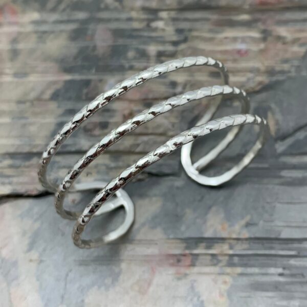 Silver Plated Adjustable Cuff Bracelet – Hammered and Bands