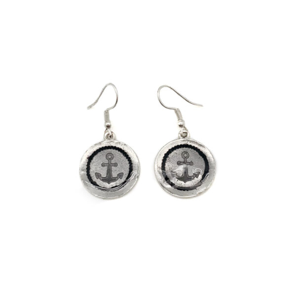 Anchor and rope earrings. Black and silver color enamel. 0.5″ x 0.5″