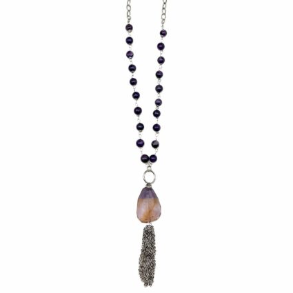 Banjara Collection – Necklace- Antiqued Brass with Sodalite and Cornelian Stone. Necklace is 30″ long.